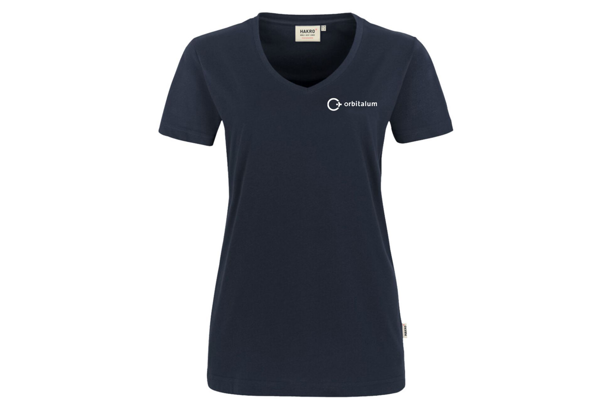 Extra-durable T-shirt for women with a feminine V-neck, ribbed neckcuff and neck tape. Rental label for easy identification in commercial laundry and hangers in the seam. Made of soft, easy-to-clean and functional medium-weight single jersey made of the HAKRO performance material mix MIKRALINAR®. Woven HAKRO neck label made of high-quality warp satin with soft, ultrasonic cut band edges for maximum wearing comfort and woven HAKRO flag label on the left side seam.